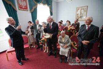 – Uroczystość ta jest niezbędna i z racji wielkiego szacunku i uznania za dokonania dla tych osób, które obchodzą ten piękny jubileusz pięćdziesięciu, sześćdziesięciu, czy sześćdziesięciu pięciu lat pożycia małżeńskiego – mówi burmistrz Bobowej Wacław Ligęza. Należą się najwyższe słowa uznania i podziękowania dla nich. Dzisiaj jest okazja, żeby wspólnie pomodlić się, bo uroczystość rozpoczyna się jak co roku Mszą Świętą w kościele pw. Wszystkich Świętych w Bobowej. Następnie jest spotkanie mające miejsce po raz pierwszy właściwie w szkole muzycznej pierwszego stopnia w Bobowej. Budynku tak ważnym dla historii naszego miasta, w dworze Długoszowskich. Chcemy, żeby ten budynek był wykorzystywany właśnie na tego typu okazje. Z racji wielkiego uznania i szacunku dla tych par myślę, że w kolejnych latach ta uroczystość też będzie się tutaj odbywać. W tym roku jubileusz pięćdziesięciolecia obchodzi piętnaście par. Jeżeli chodzi o diamentowe gody to dwie pary a jeżeli chodzi o żelazne gody to jedna para. Myślę, że prawie wszyscy dopisali trzeba powiedzieć z małymi wyjątkami, bo nie wszystkim niestety to zdrowie do końca dopisało. Ale trzeba powiedzieć, że jubilaci byli bardzo pogodni, pozytywnie nastawieni, była okazja wymienić pewne zdania, doświadczenia, mogli także podzielić się swoimi opiniami. Jest to przede wszystkim dobra okazja aby się mogli zintegrować, poczuć docenionymi. Ze strony Urzędu Miejskiego w Bobowej zawsze staramy się skierować te słowa podziękowania, słowa szacunku, uznania za wkład jaki włożyli wszyscy jubilaci w środowisko w którym żyją. Poświęcając się swojej rodzinie, budując domy, zapewniając byt rodzinie, następnie za dbałość o wnuki, często i prawnuki. Myślę, że to jest podniosła uroczystość, która powinna być kontynuowana i ja z wielkim zawsze szacunkiem i uznaniem odnoszę się do nich osobiście w nich uczestnicząc. Nie wyobrażam sobie inaczej – kończy burmistrz.