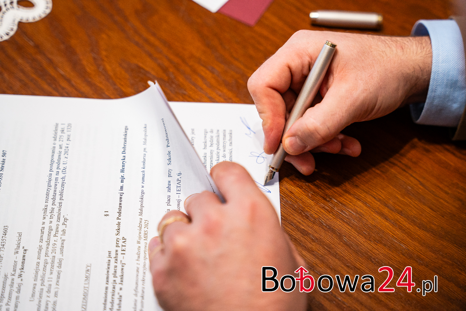 Wykonawcą inwestycji będzie lokalna firma budowlana PRZEM-BUD ze Stróż. Dzisiaj została podpisana umowa pomiędzy właścicielem a burmistrzem Bobowej, Marcinem Wąsem.