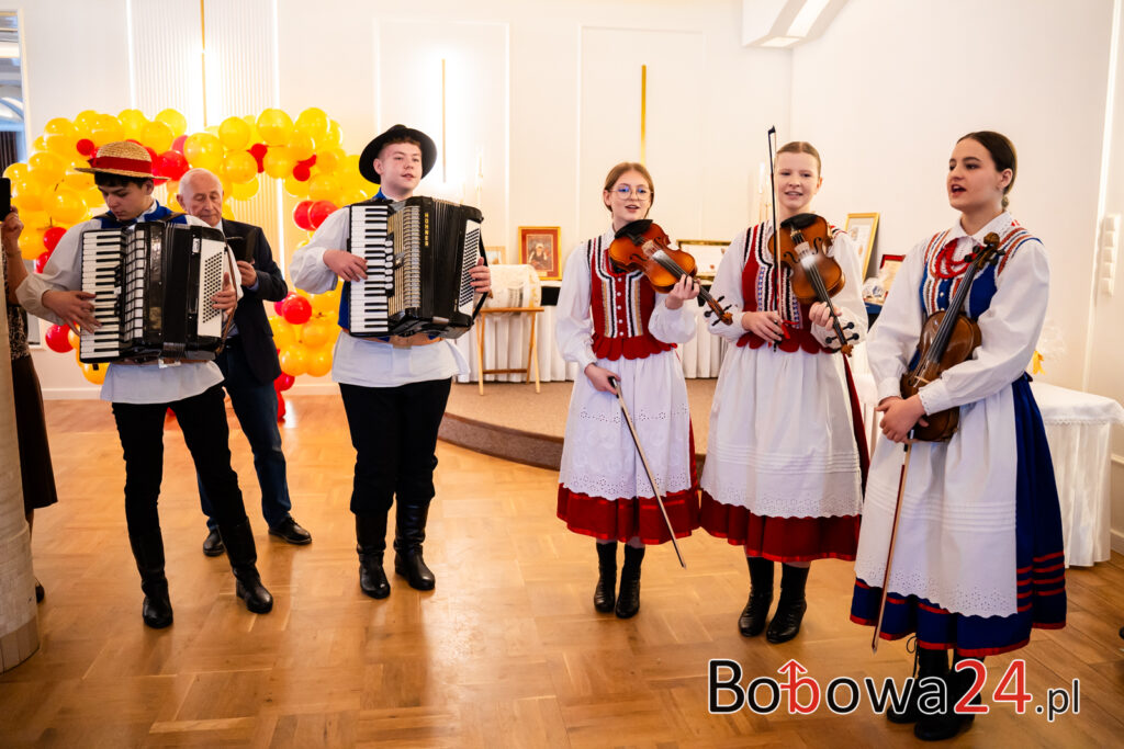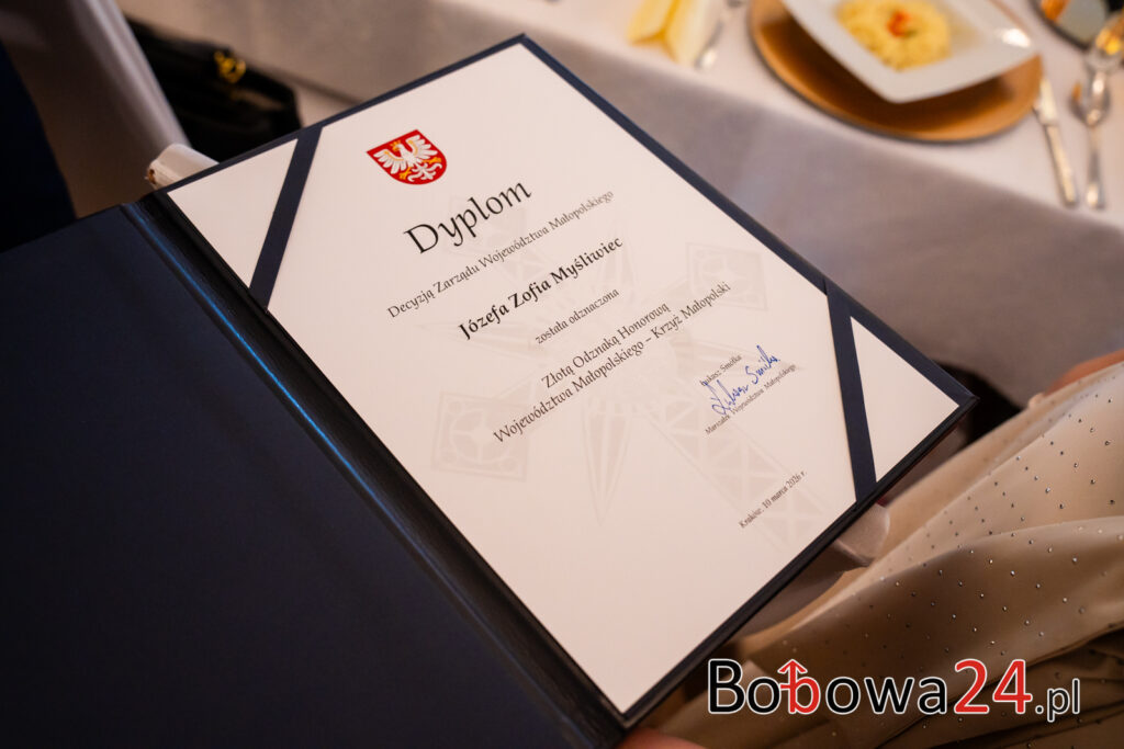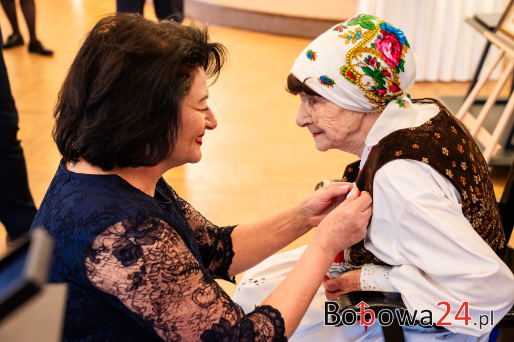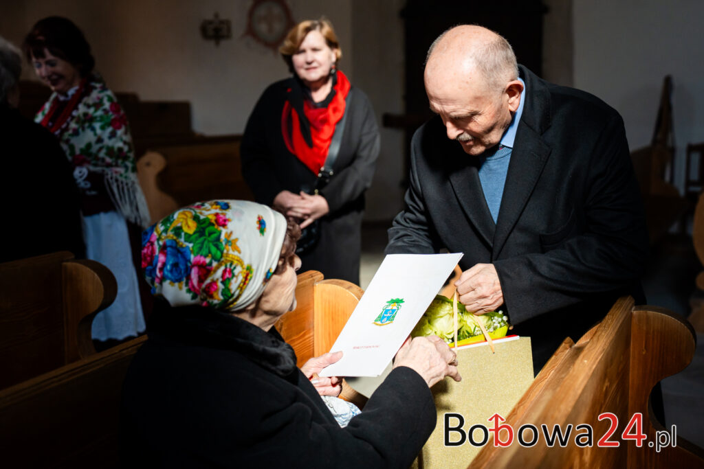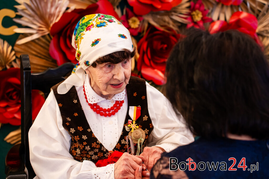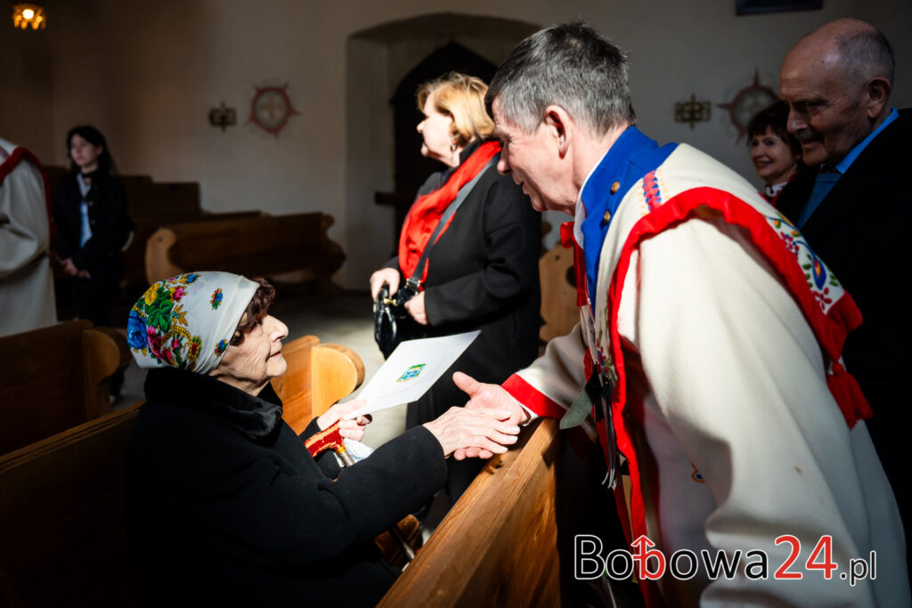 Wydarzenie rozpoczęło się od uroczystej mszy świętej w Kościele św. Zofii w Bobowej. Po nabożeństwie nastąpiło przywitanie gości przez córkę jubilatki, Marię Ziomek, która serdecznie powitała wszystkich zgromadzonych. Następnie odbyło się wręczenie odznaczenia Złotego Krzyża Małopolskiego przez Jadwigę Wójtowicz, jako wyraz uznania za całokształt działalności Pani Józefy Myśliwiec w promocji kultury i tradycji regionalnych:
