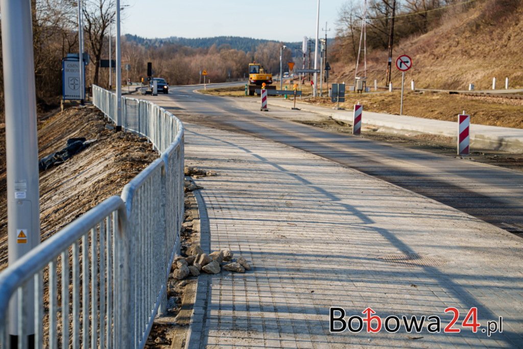Obecnie inwestycja znajduje się na końcowym etapie realizacji. Zgodnie z planem termin zakończenia zadania przewidziano na II kwartał bieżącego roku. Do wykonania pozostało jeszcze kilka istotnych elementów. Wśród nich są m.in. dokończenie podbudowy z kruszywa, wykonanie warstwy ścieralnej na całym odcinku inwestycji, montaż oznakowania pionowego i poziomego, a także przeprowadzenie prac porządkowych.