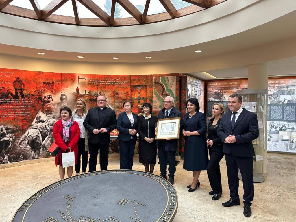 Odwiedzili Muzeum Pamięci 2 Korpusu Polskiego na Monte Cassino – miejsce, które powstało dzięki inicjatywie Związku Polaków we Włoszech. W trakcie wizyty pozostawili wyjątkową pamiątkę przygotowaną przez samorząd gminy Bobowa. Mowa o grafice okolicznościowej przedstawiającej Emila Czecha. Do wizerunku został dołożony fragment koronki klockowej.